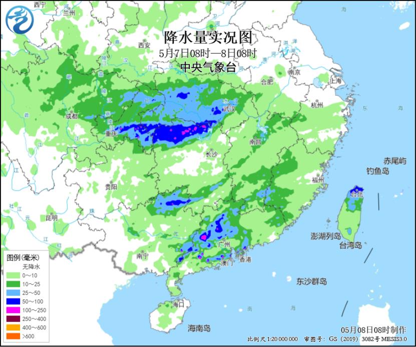 预计,5月8日8时至9日8时,江淮大部、江汉东部、江南西南部和中东部、华南北部以及华北东北部等地部分地区有大到暴雨,其中,安徽西南部、湖北东部、江西东北部、浙江西部、广西北部等地部分地区有大暴雨(100至180毫米)。