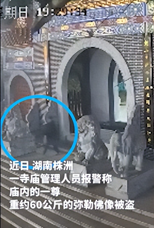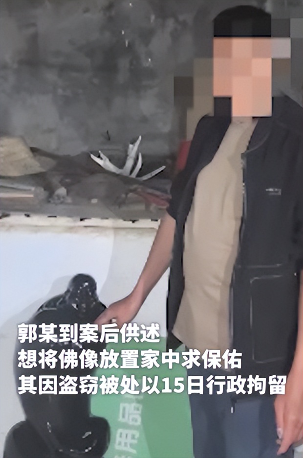 近日,湖南株洲。一寺庙内的一尊60公斤弥勒佛像被盗。民警将嫌疑人郭某抓获,其称为求保佑将佛像盗回家供奉,其因盗窃被行拘15日。
