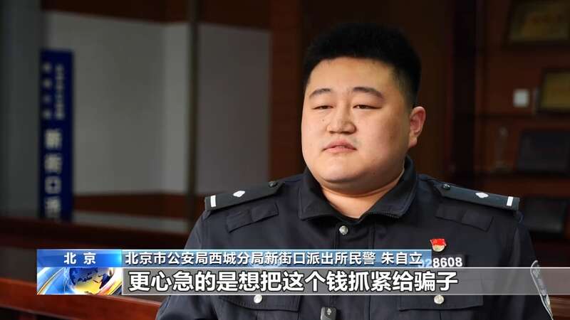 北京市公安局西城分局新街口派出所民警朱自立:她最开始来派出所的时候处于一个钻牛角尖的状态,眼睛都是发直的,跟我们沟通的过程中更心急的是想把这个钱抓紧给骗子。