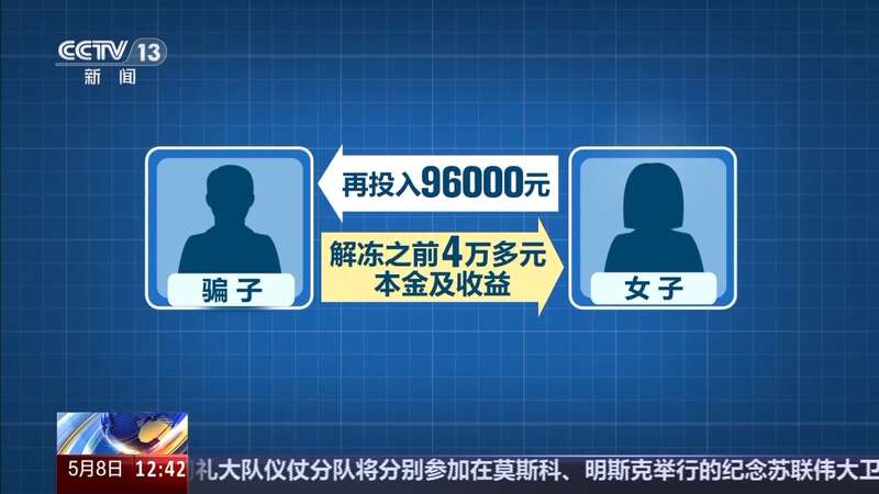 这名女子遭遇的是一起典型的投资理财类电信网络诈骗。起初,骗子诱导她进行小额投资,并按时支付较高的利息回报,比如投入500元后返还600元,投入1000元后返还1500元,以此获取她的信任。当女子投入一笔四万多元的较大金额时,骗子便以操作失误为借口拒绝返利,并声称只有再投入96000元才能解冻之前的4万多元本金及收益并返还给她。