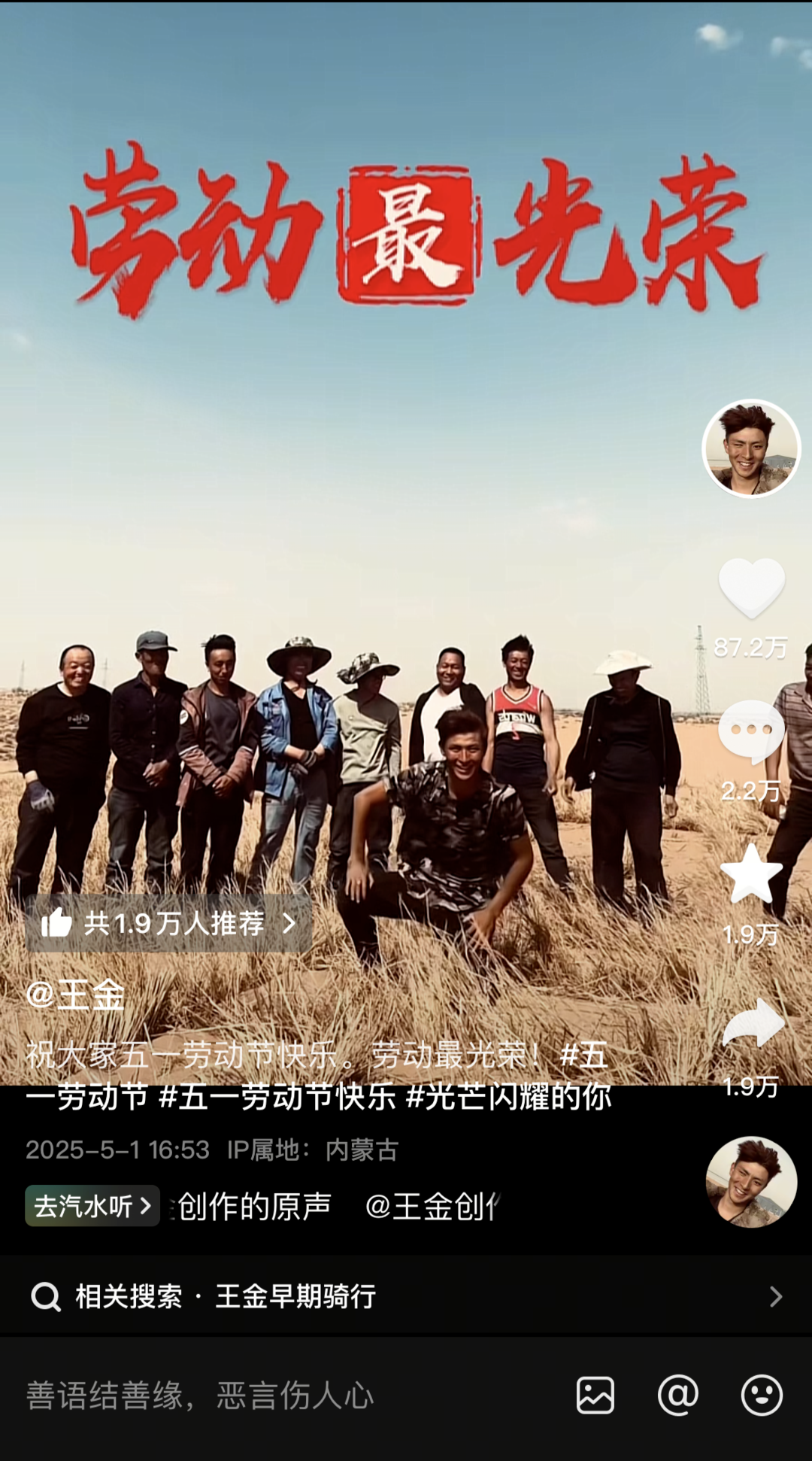 王金曾在采访中透露,他今年23岁,父母如今在内蒙古种柳树,四月初他也来到内蒙古和父母一起。王金称:“拍视频只是为了记录生活,没想当网红。”
