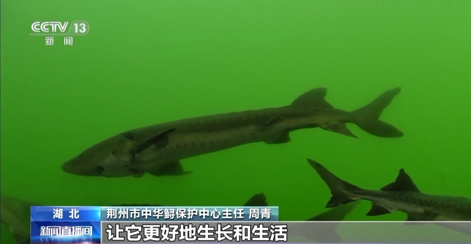 荆州市中华鲟保护中心主任 周青:子一代的中华鲟,它们的爸爸妈妈是长江里面野生的中华鲟,通过人工繁殖产生的后代就称为子一代。中华鲟的性成熟时间平均在15岁左右,我们给它们营造了更大的空间,更好模仿长江里野生的环境,让它们更好地生长和生活。
