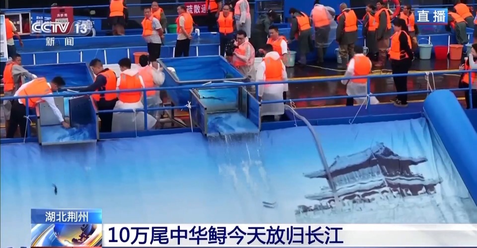 中华鲟是长江水生生物的旗舰物种,也是我国特有的古老珍稀鱼类,有着“水中国宝”之称。近年来,长江中的野生中华鲟数量稀少,且连续8年没有发现自然繁殖活动。通过人工繁育的中华鲟增殖放流,来补充长江里中华鲟种群的数量已成为中华鲟保护的重要手段。今天,中华鲟增殖放流活动在长江荆州段进行。