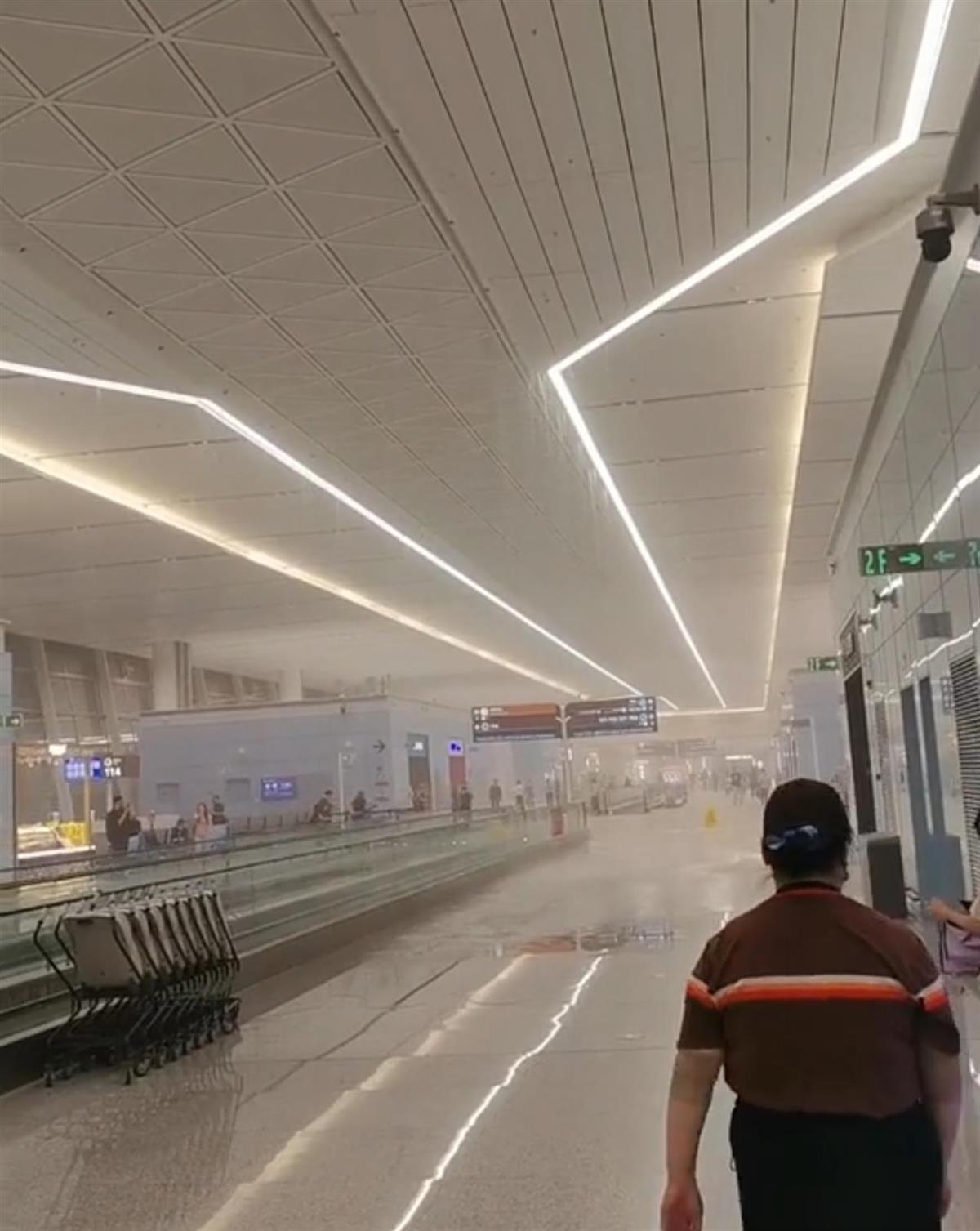 航站楼变“水帘洞”(图源:视频截图)