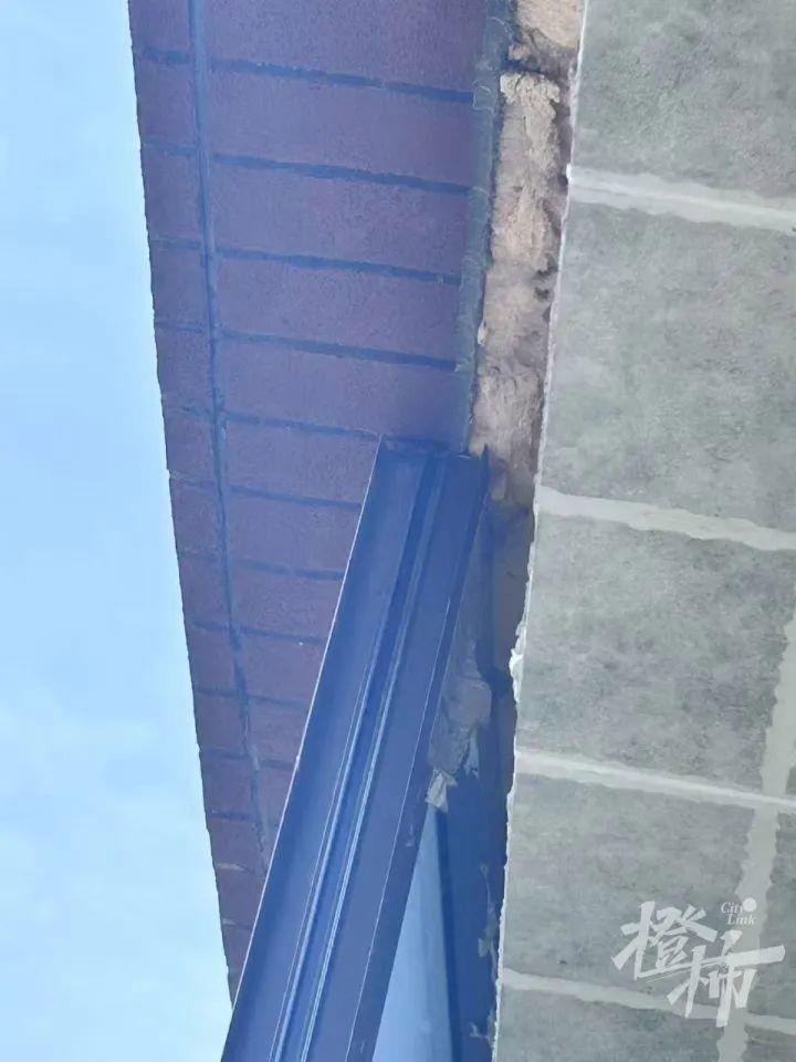 “掉落的窗户与窗户之间,没看到连接螺丝,上面固定的是发泡胶。来检查的师傅说,这样的安装是严重不合格的。