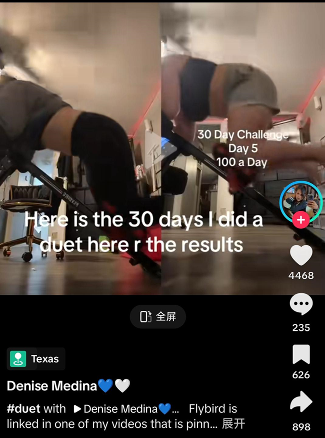 2024年10月,美国TikTok博主梅迪娜(化名)发布了一则视频,画面里她正用一个家用“卷腹机”锻炼,全程只有15秒,甚至连正脸都没露。