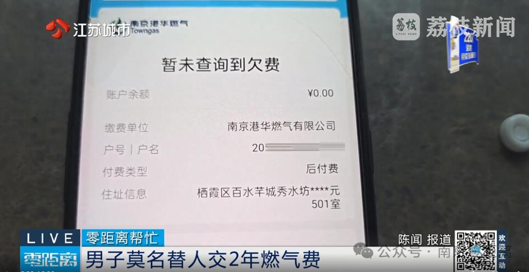 高先生家住南京南京雨花台区金地自在城,早在今年三月,他查看付款账单时,意外发现自己的手机竟然绑定了栖霞区一位住户的燃气缴费信息,而且每个月都会自动扣款,且缴费已经持续了两年多。