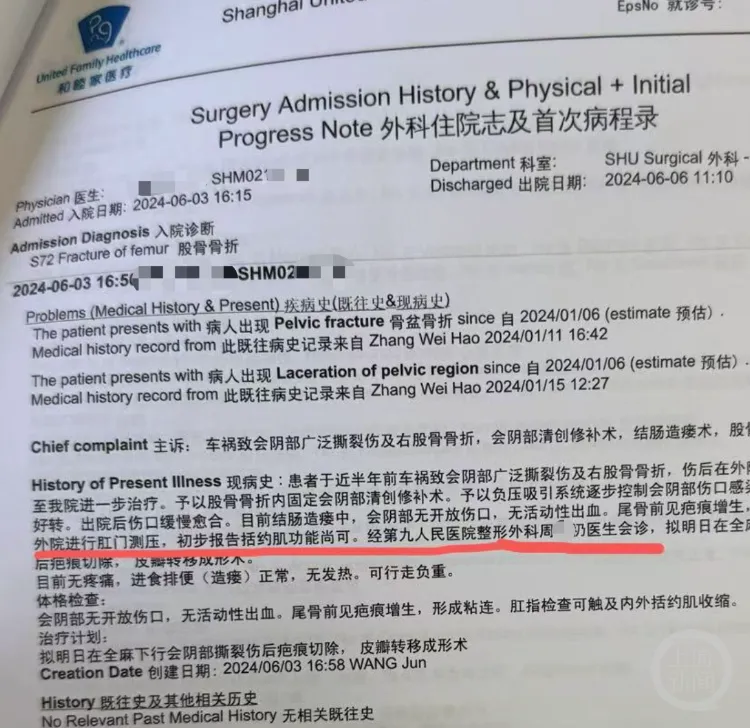 潘先生介绍,自己是江苏人,去年1月在东南亚自驾时出车祸,造成股骨骨折、会阴部撕裂伤,通过包机辗转返回国内治疗,选择了上海长宁区和睦家医院进行手术。