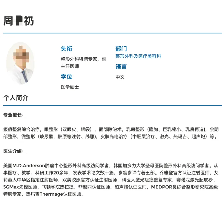 上海和睦家医院官网上关于周某礽的介绍未提及上海交大医学院附属第九人民医院。网络图