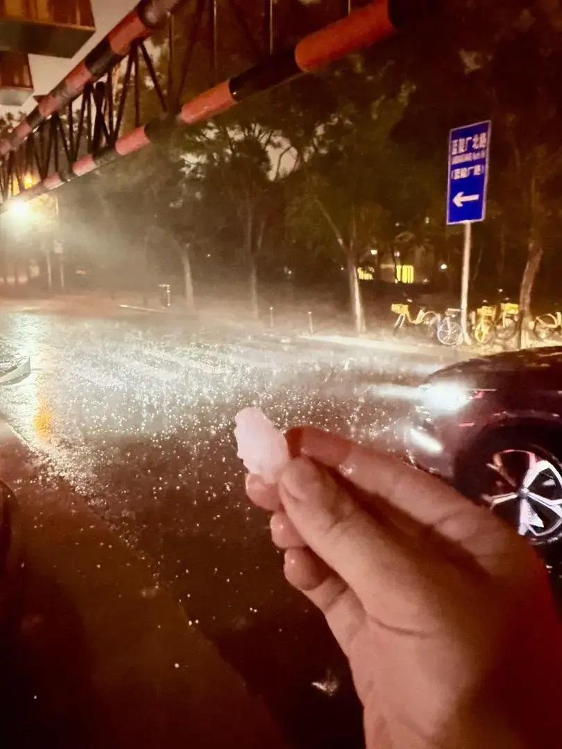 直径超4厘米!北京多地下冰雹,满地都是“鸽子蛋”。