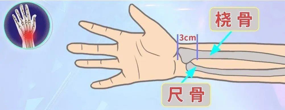 若桡骨远端骨折,可用另一只手托住受伤手腕,或用书本托住手及前臂,用带子悬吊脖子上,或用绷带固定于胸前。
