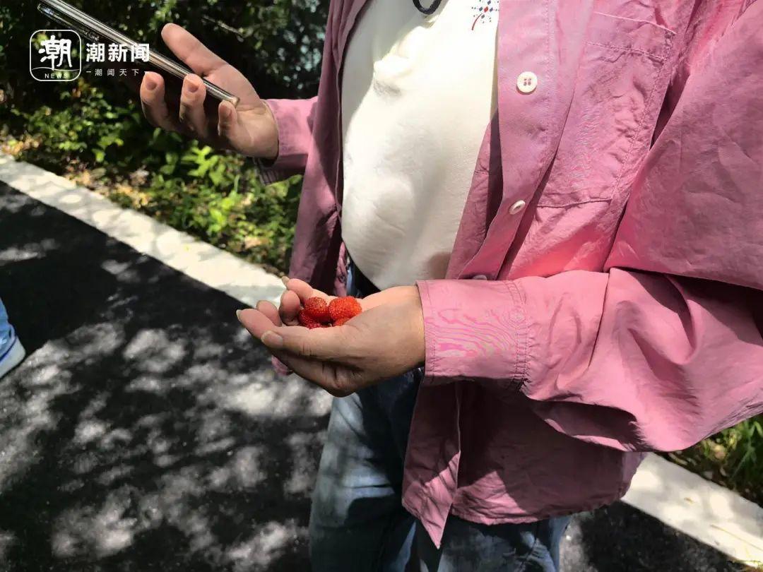 有采摘经验丰富的一位游客科普:“这不是野草莓,是蛇莓。”