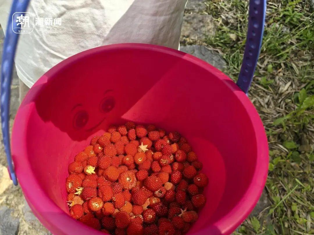 小朋友也在晒出“战绩”——小半桶饱满个大的野草莓。“摘不完,根本摘不完。”孩子的妈妈笑着说,他们是带孩子亲近大自然的:“我们也是跟着网上的攻略按图索骥,实际上网上说的几处地方都被人摘过好几轮了,倒是几个没有标明的地方,随便采采就有这么多。”
