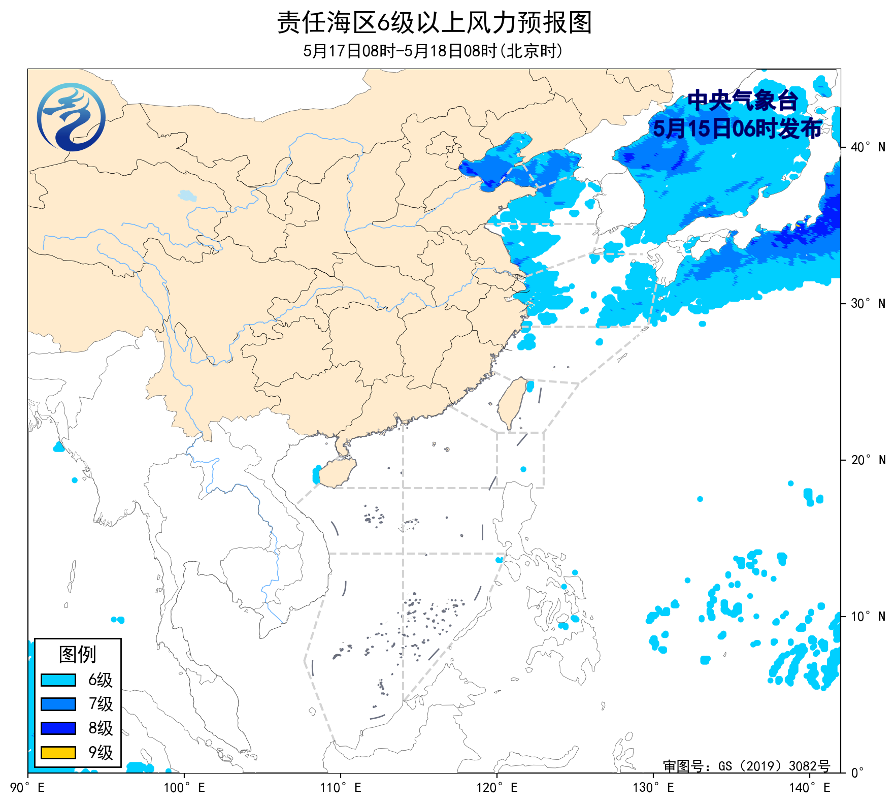 17日08时至18日08时,渤海将有6~7级、阵风8级的西北风减弱到4级以下的西南风,渤海海峡将有6~7级、阵风8级的西北风减弱到4~5级的偏北风,黄海北部海域将有5~7级、阵风8级的偏西到西北风,东海北部海域将有5~6级、阵风7级的西南风转东北风,黄海中部和南部海域将有5~6级、阵风7级的偏北到西北风。