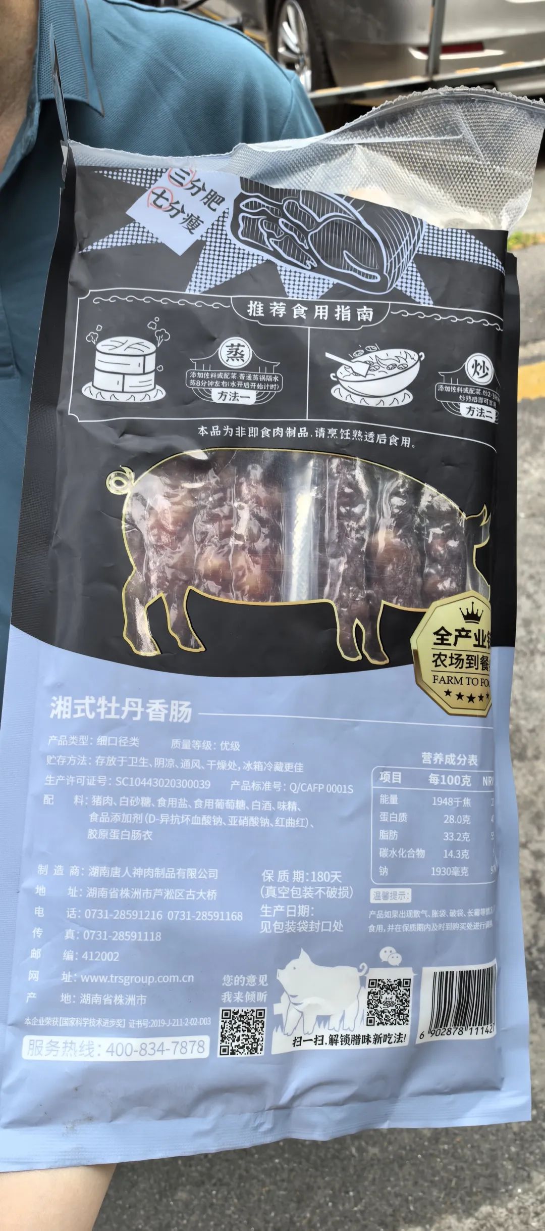 陈先生表示,自己很喜欢唐人神的这款香肠,平时多次购买,4月29日他购买后带回家准备炒菜时就发现了香肠的霉变情况。当时陈先生立即查看了包装,这袋香肠的生产日期为3月14号,保质期180天,目前香肠还在保质期内。