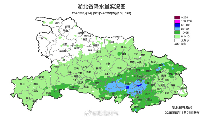 昨日07时至今日(15日)07时,十堰、神农架、襄阳北部基本无雨;鄂西南东南部、江汉平原中东部、鄂东南大部、鄂东北东部小到中雨为主,其中武汉、荆州、仙桃、天门、潜江、咸宁、黄冈18个县99个乡镇出现大雨,仙桃、经开区、江夏、嘉鱼7个乡镇暴雨;其余地区小雨。最大雨量经开区湘口街道71.3毫米、最大小时雨强为该街道22.1毫米(15日04时)。