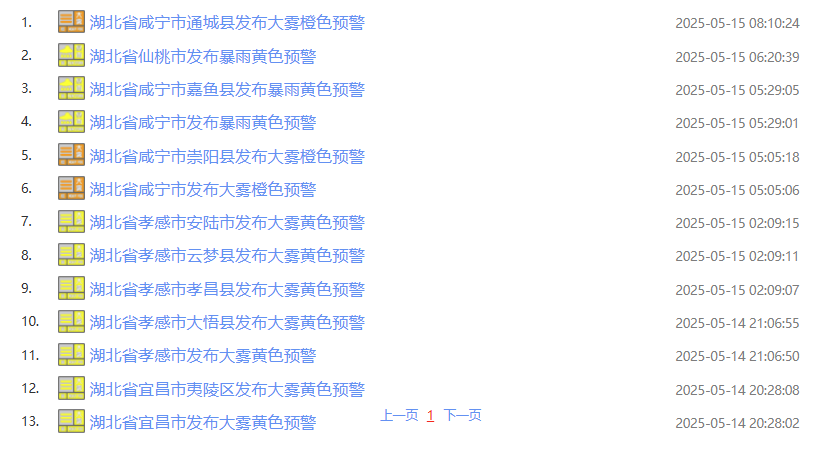 5月16日08时-17日08时,鄂西南、鄂东南多云有阵雨或雷阵雨;其他地区多云到晴天。最高气温鄂西北32~36℃、恩施地区26~29℃、其他地区29~32℃,最低气温18~23℃,偏南风2到3级。
