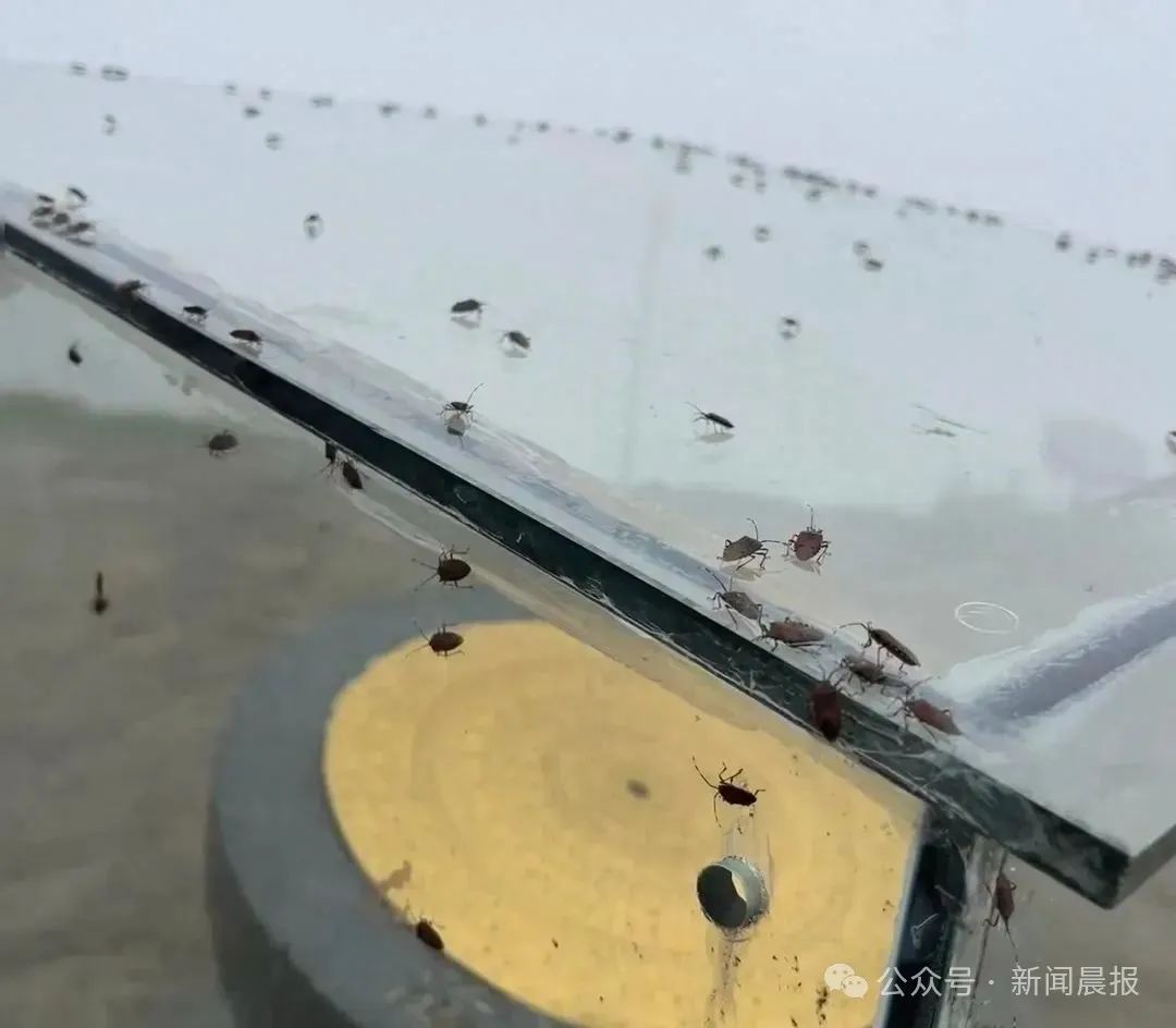 ▲地上和帐篷上密密麻麻地爬满臭屁虫 视频截图