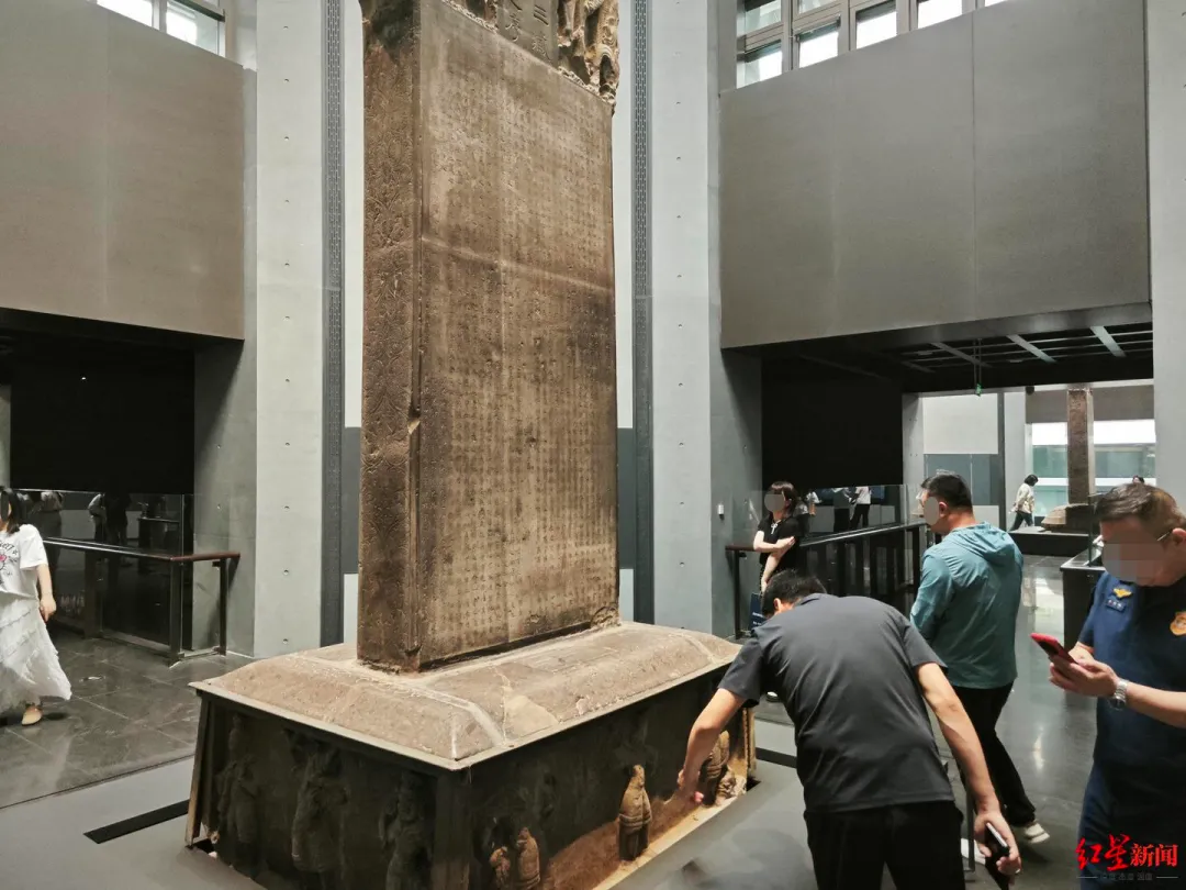 以“大秦景教流行中国碑”为例,该碑是世界考古发现史上最负盛名的“四大石碑”之一,2002年1月被国家文物局列入《首批禁止出国(境)展览文物目录》,堪称国宝级文物。之前在老展厅内,该碑有一块玻璃覆盖在表面上。“但现在就等于是完全裸展,没有任何保护,所谓的保护就是每个展厅派一个保安巡回。”马先生告诉红星新闻记者。