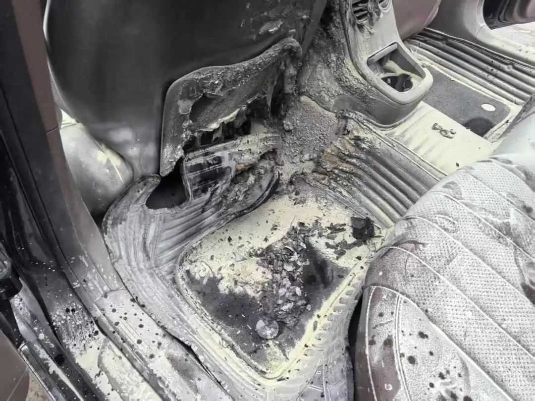 他赶紧跑回车里,并去借来了灭火器。经过一顿操作后,火灭了,但车也要经历一场大修。