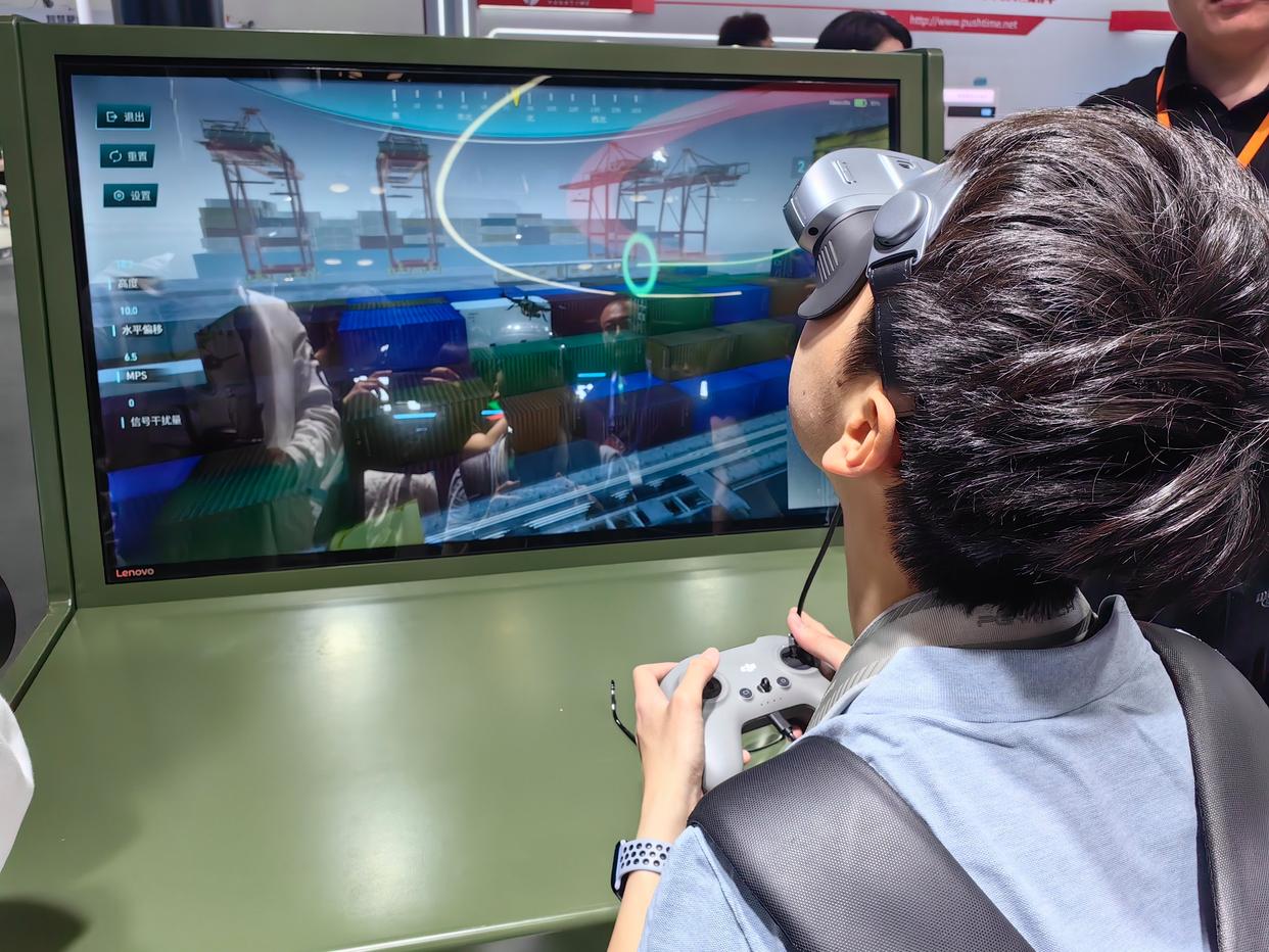 轻推摇杆,屏幕中的无人机飞向半空,在VR眼镜里,周围场景的情况一览无遗。展会现场,互动项目人气很旺。观众不仅可以了解轻武器射击训练系统、无人机模拟训练软件等平台,观看无人机编队飞行展示等项目,还可以进行互动体验。