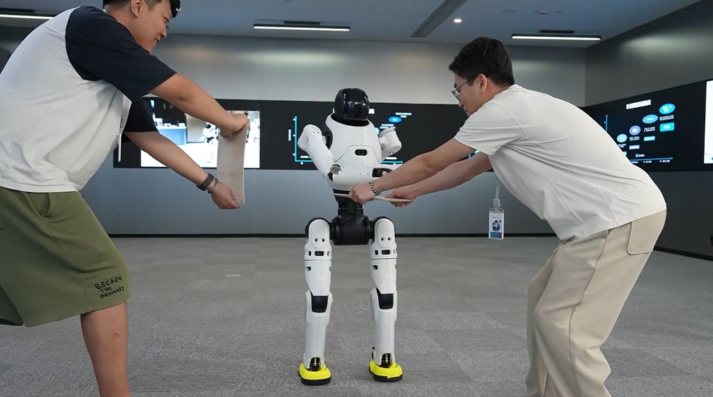 灵犀X2甚至还学会了一些拳脚功夫,将工作人员手中的木板一掌击为两段。