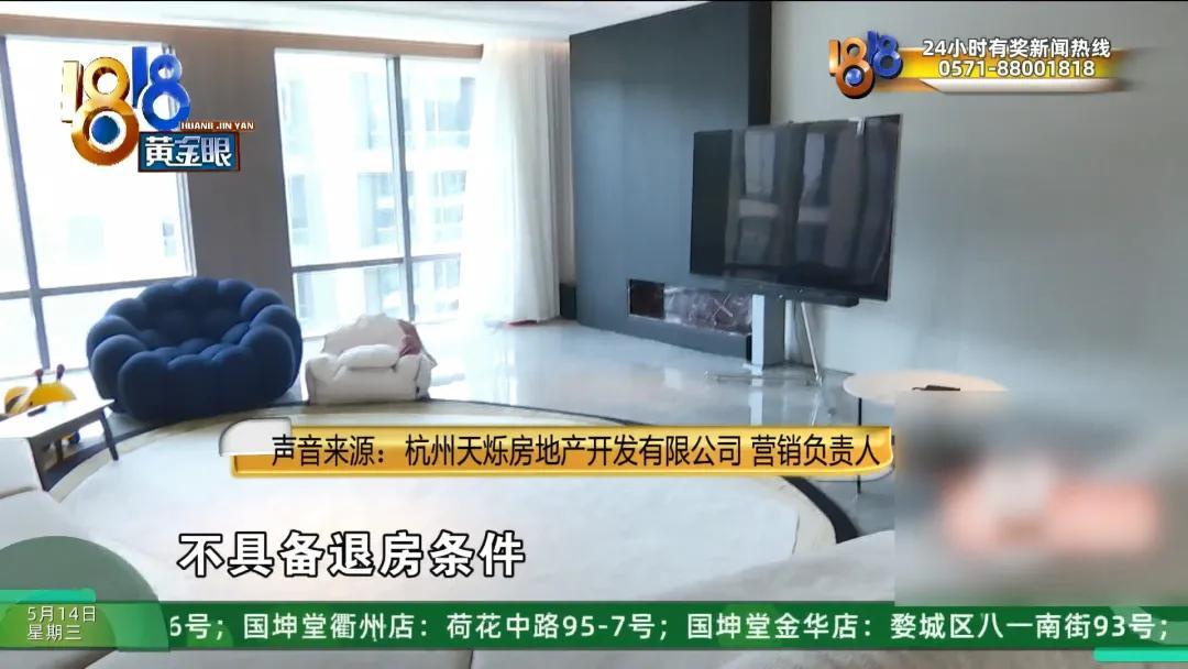 杭州天烁房地产开发有限公司 营销负责人:知道的,收房已经办理房产证了,而且装修入住已经一年多了,按照双方履行合同的情况下,不具备退房条件。