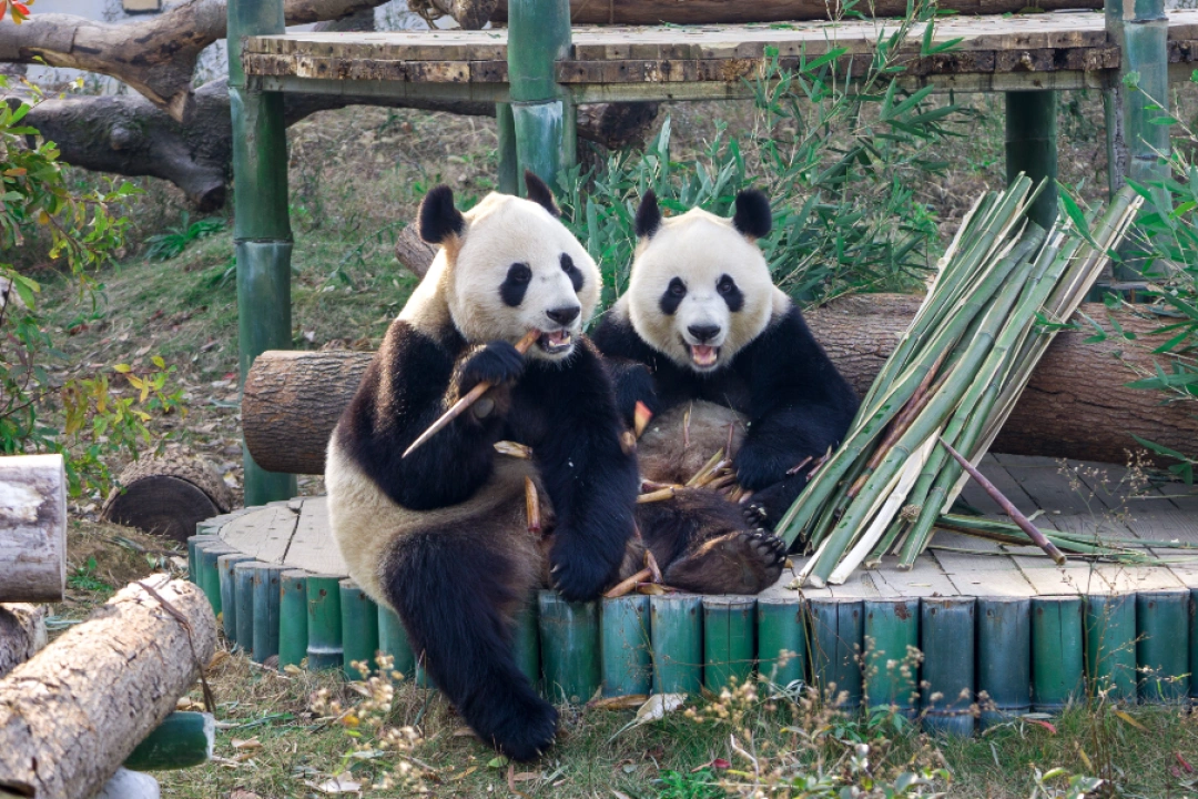 大熊猫作为喜欢独居的动物,很少有成年后同居的情况。而深深慢慢这一对双胞胎姐妹花属于极其特殊的存在。姐妹俩目前生活在一个圈舍,姐姐深深沉稳喜静,常独占木架闭目养神;漫漫则好奇心旺盛,时而扒窗“窥探”游客,时而与姐姐打闹翻滚。据饲养员介绍,深深漫漫目前未成年,因此可以生活在一起,一旦成年,两小只也会需要独立的圈舍。