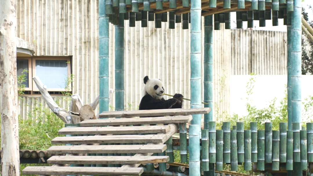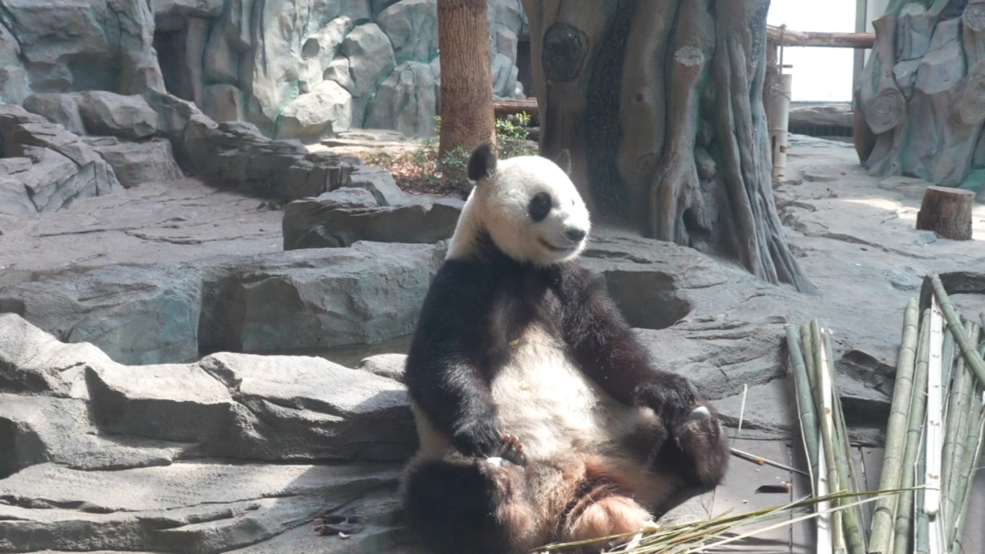 作为苑内“颜值天花板”,皓月凭借雪白蓬松的毛发和优雅举止俘获无数镜头。它常静卧竹丛,慢条斯理咀嚼嫩竹,偶尔抬头“凝视”游客的模样,被不少人戏称为“熊猫界的文艺青年”。