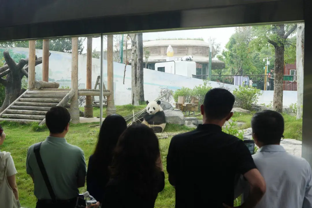憨态可爱的熊猫们,或慵懒地躺在树杈间休憩,或抱着青翠的竹子大快朵颐……总编辑们漫步在岳阳中华大熊猫苑,近距离探访这些可爱萌动的国宝:双胞胎熊猫“深深”与“漫漫”宛如灵动的两个小精灵,它们日常嬉戏打闹,如孩童般纯真无邪;熊猫“向野”则以令人捧腹的“反差萌”,获得大家的喜爱,当总编辑们走到它生活的圈舍时,“向野”正欢快地在草地间散步,时不时还抬头看向正在拍摄的工作人员,镜头感满满;作为苑内“颜值天花板”,皓月则在水池边玩起了水花,胖嘟嘟的脸上也被溅上颗颗水珠,活像一个顽皮淘气的小孩……