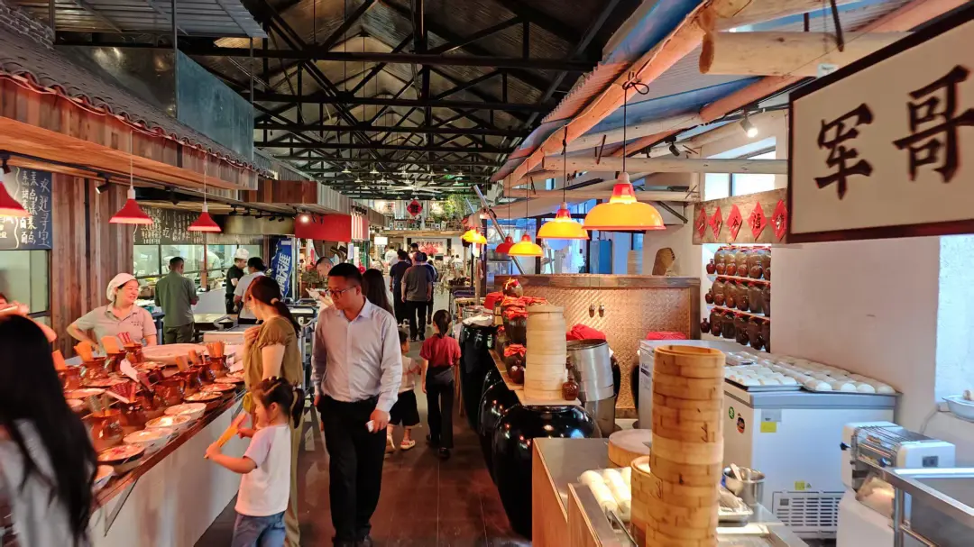踏入洞庭南路历史文化街区,青石板路油光锃亮,与斑驳的老墙、充满烟火味的鱼巷子,交织成独特的市井风情。走进街区,可以去绿皮火车车厢设计的打卡点拍几张美照;也可以驻足极具地方特色的各色店铺,每一件物品、每一道佳肴都承载着岳阳的记忆与情怀;走进街河口渔市,更像一头扎进了生活的热锅里,大厨们利落杀鱼、精心备菜,空气中弥漫着鲜香与烟火,食客们围坐在还原成老旧街市的就餐区,热乎饭菜上桌,欢声笑语不断,窗边望出去,老街景象和屋内气氛交织,这里不只是吃饭的地儿,更是能品尝出岳阳烟火气与生活真味的宝藏角落。极目新闻城市品牌中心区域总监黄达就感慨说:“走进这个街区,就仿佛走进了一段怀旧的时光里,绿皮火车、仿旧的街巷,还有人气十足的餐饮,一下子就感受到了岳阳这座城市浓浓的烟火氛围。”