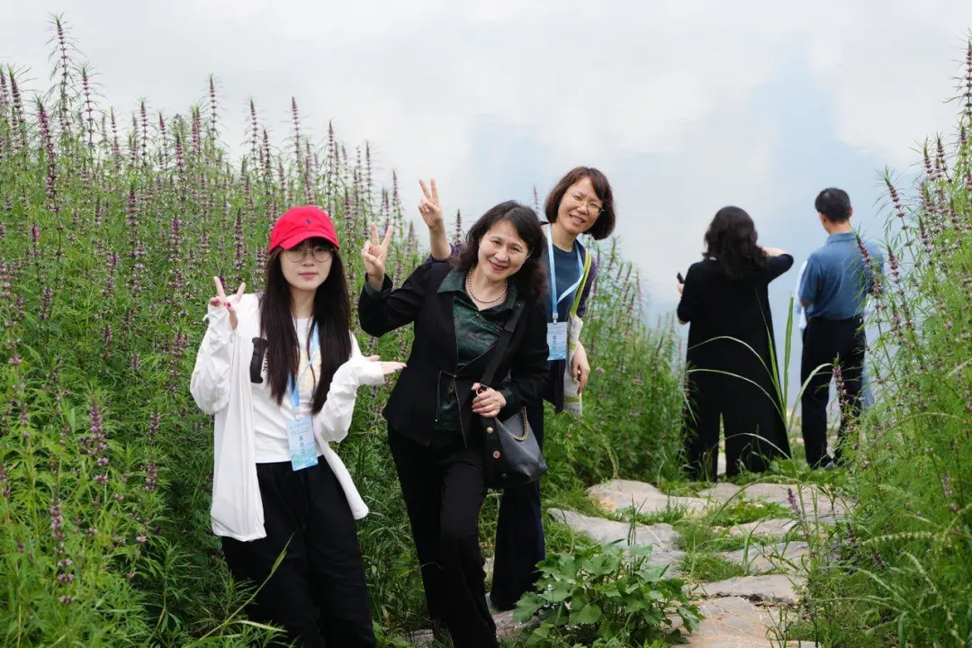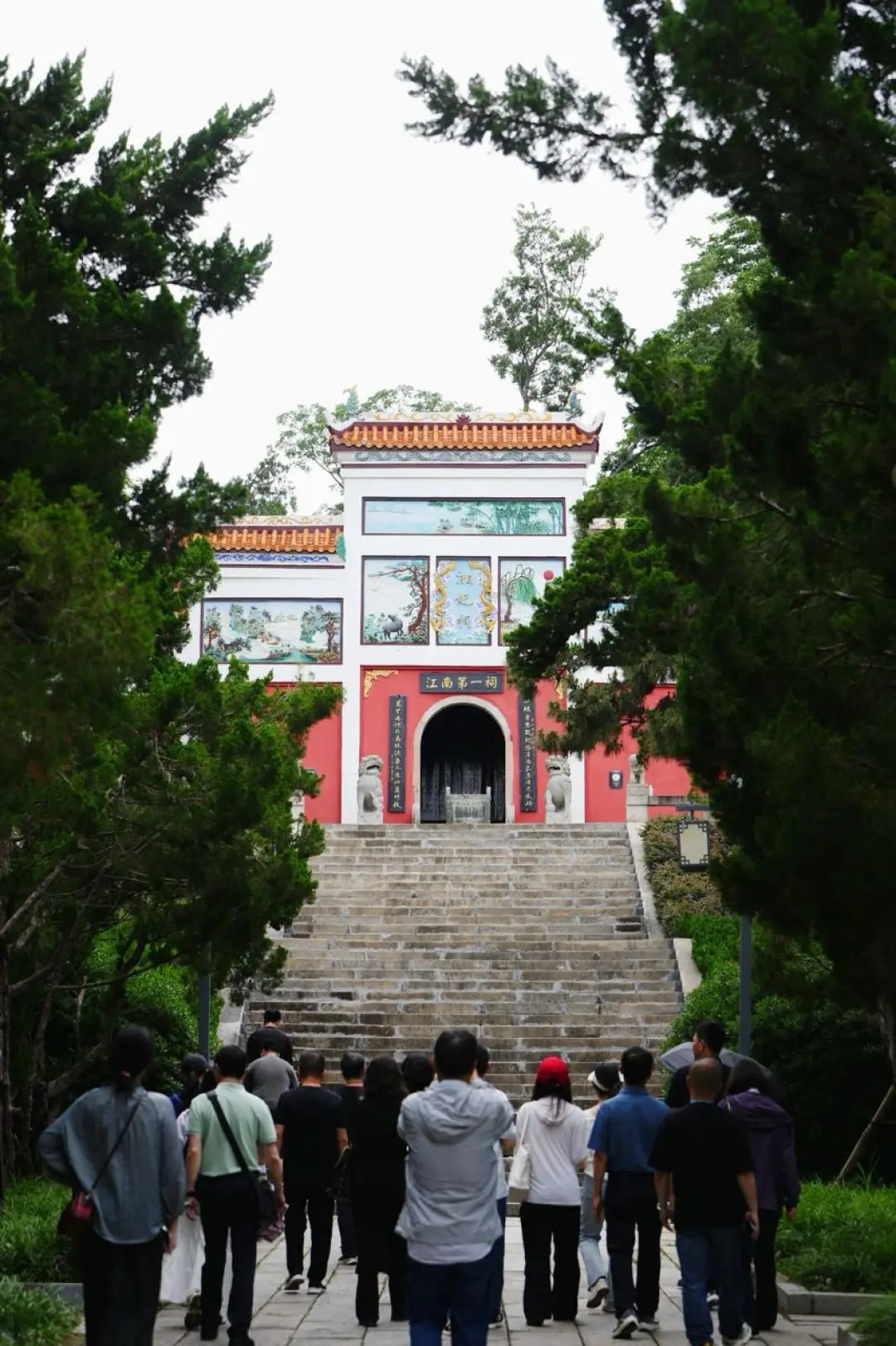 移步君山岛,诗意的传说,如湖面氤氲雾气般萦绕身旁。柳毅井旁,仿佛能看到柳毅传书的侠义身影;湘妃祠中,斑竹泪痕诉说着千古哀怨的爱情绝唱。总编辑们也在讲解员的讲述中,在脑海里勾勒出这片“水上蓬莱”的神韵。“遥望洞庭山水色,白银盘里一青螺”,这是诗词韵律里描绘的君山,而在总编辑们的采风镜头里,它又呈现出几分世外桃源般的仙意。澎湃新闻编委高剑平用相机捕捉下君山岛的不少美景,他站在湘妃祠的牌楼前,端起相机对准了远处洞庭湖畔与天空相接的青翠草甸,“远离了高楼大厦,从另一个视角去眺望城市,真的特别美!”