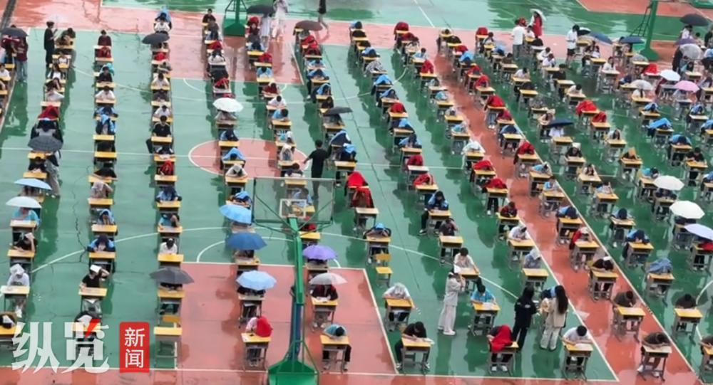 记者注意到,在网友发布的视频中显示,许多学生在户外操场进行考试,画面中下着雨,有学生撑伞,还有学生用外套套头在雨中作答。有网友称,“不能择日再考?”“就不能在室内考试?”