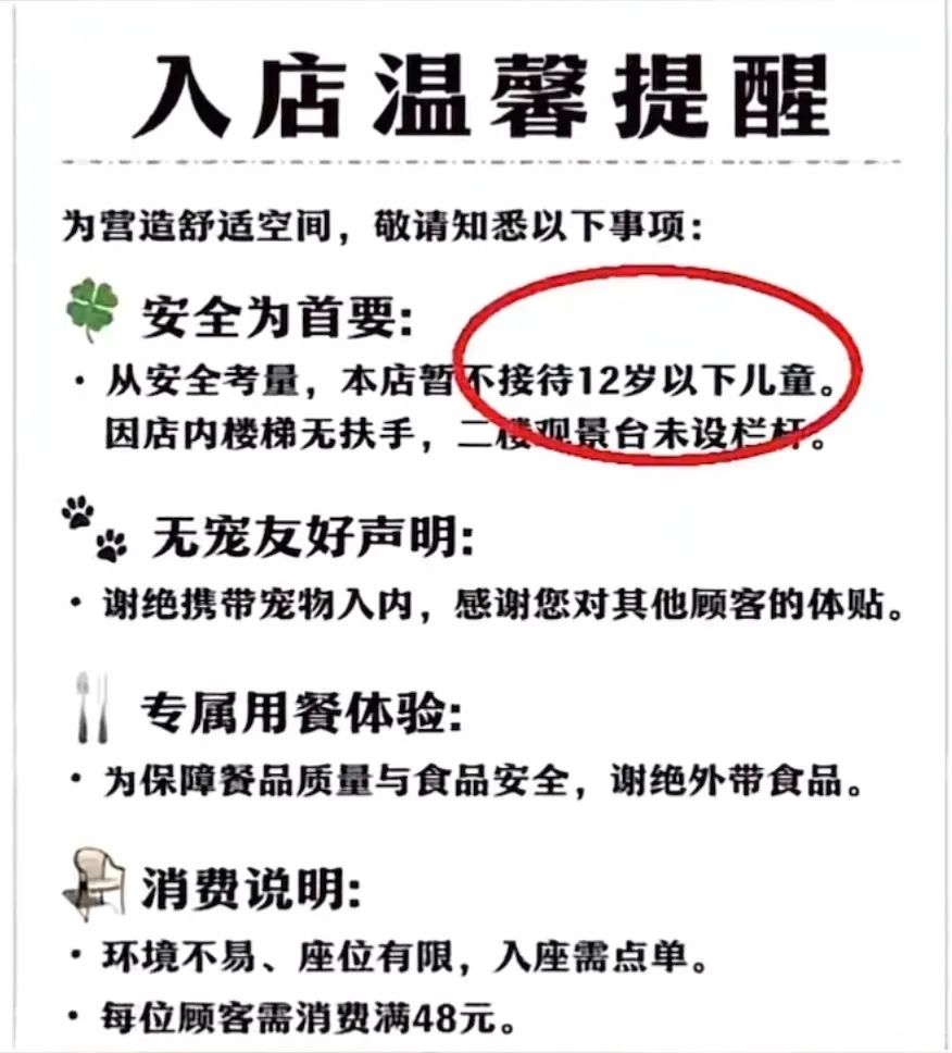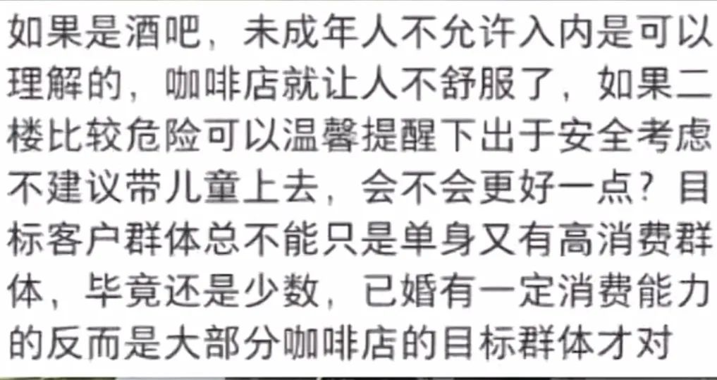 据媒体报道,近日多名消费者反映,带孩子去广西桂林一网红咖啡店时被告知,禁止12岁以下儿童入内。消费者称,在团购平台未见到任何“禁童”标识,到现场沟通后仍被拒绝。
