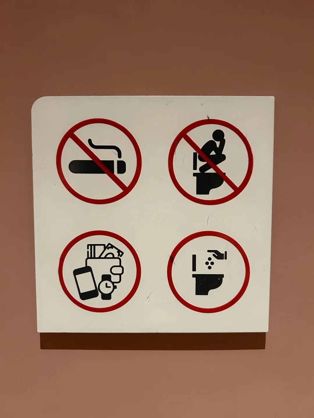 商城厕所里有禁止“悬空”蹲坐马桶的标识