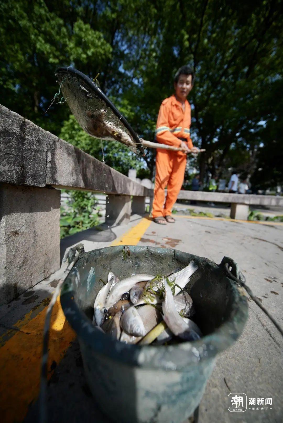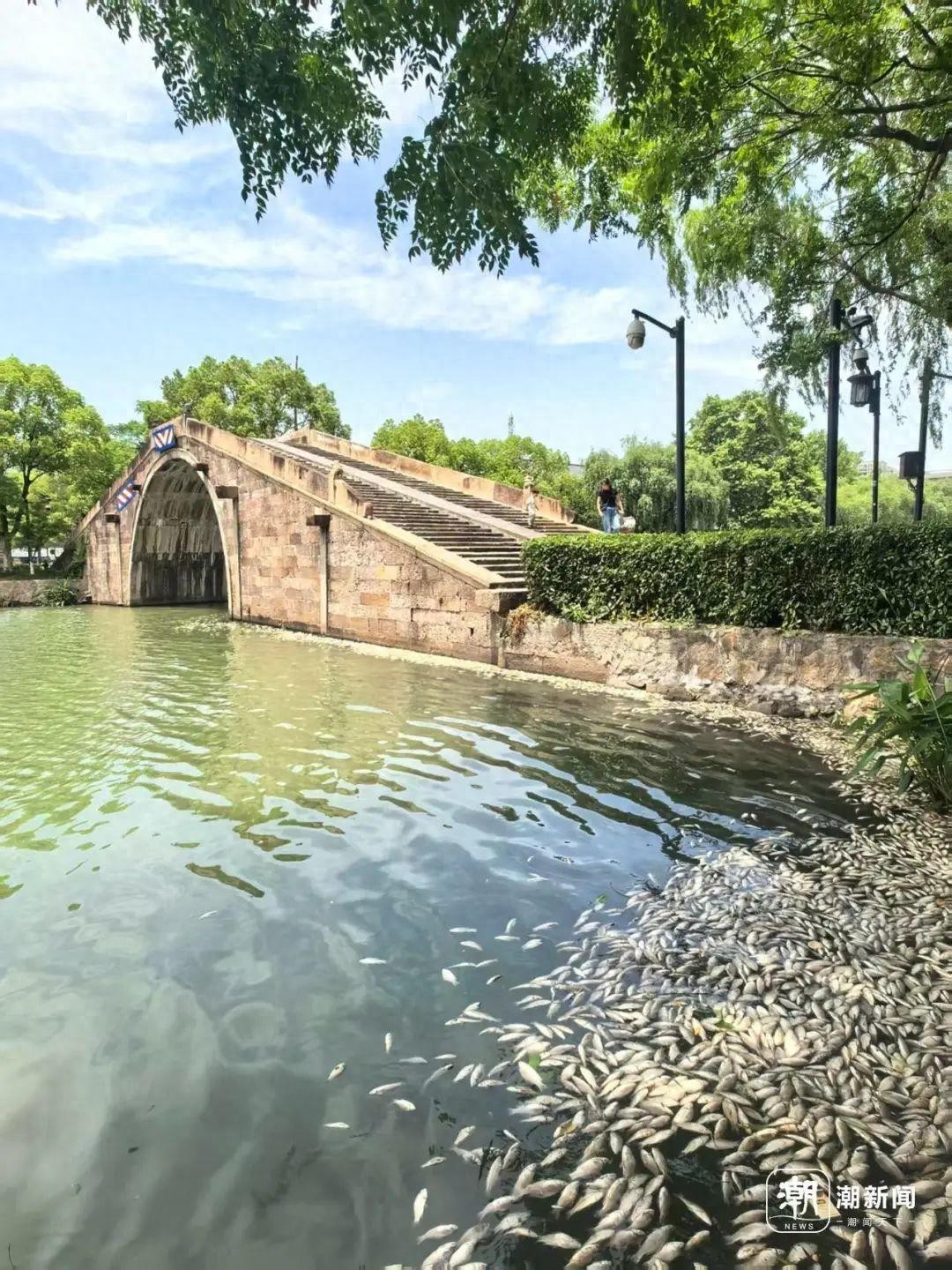 方先生中午回家吃午饭,途中路过欢喜永宁桥时,突然发现上塘河沿着河岸漂浮着密密麻麻的鱼群,“凑近了看,都是翻肚皮的,还有一点淡淡的鱼腥味。