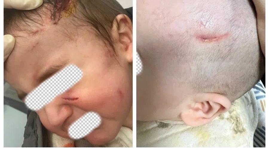 今年3月,一场意外打破家庭的宁静——1岁混血男童小宝(化名)在家中被宠物犬扑咬,头面部多处撕裂伤,血肉模糊!最严重的伤口位于头顶,长达4cm,深可见骨,下方还形成5cm潜行空腔;左侧面颊一道2.5cm伤口深至筋膜层,另有多处齿痕交错。父母紧急将孩子送至上海儿童医学中心时,距离受伤已6小时,伤口严重污染,感染与组织坏死风险极高!