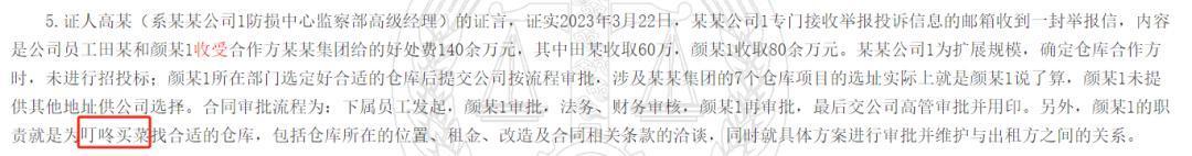 “颜某1的职责就是为叮咚买菜找合适的仓库,包括仓库所在的位置、租金、改造及合同相关条款的洽谈,同时就具体方案进行审批并维护与出租方之间的关系。”某司防损中心监察部高级经理高某作证称。
