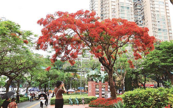中山公园一直是观赏凤凰花的好地方,古色古香的园区内,临水而立的凤凰木亭亭如盖,它们撑开红色大伞,微风徐徐,红色的花瓣坠落在碧水之上,一圈圈涟漪展开,花开而落,水也有了浪漫的形状。家住厦禾路的吴女士和老伴常来中山公园散步,她说:“凤凰花开得真是太灿烂了,阳光明媚时,闲坐赏花都令人心情舒畅。”