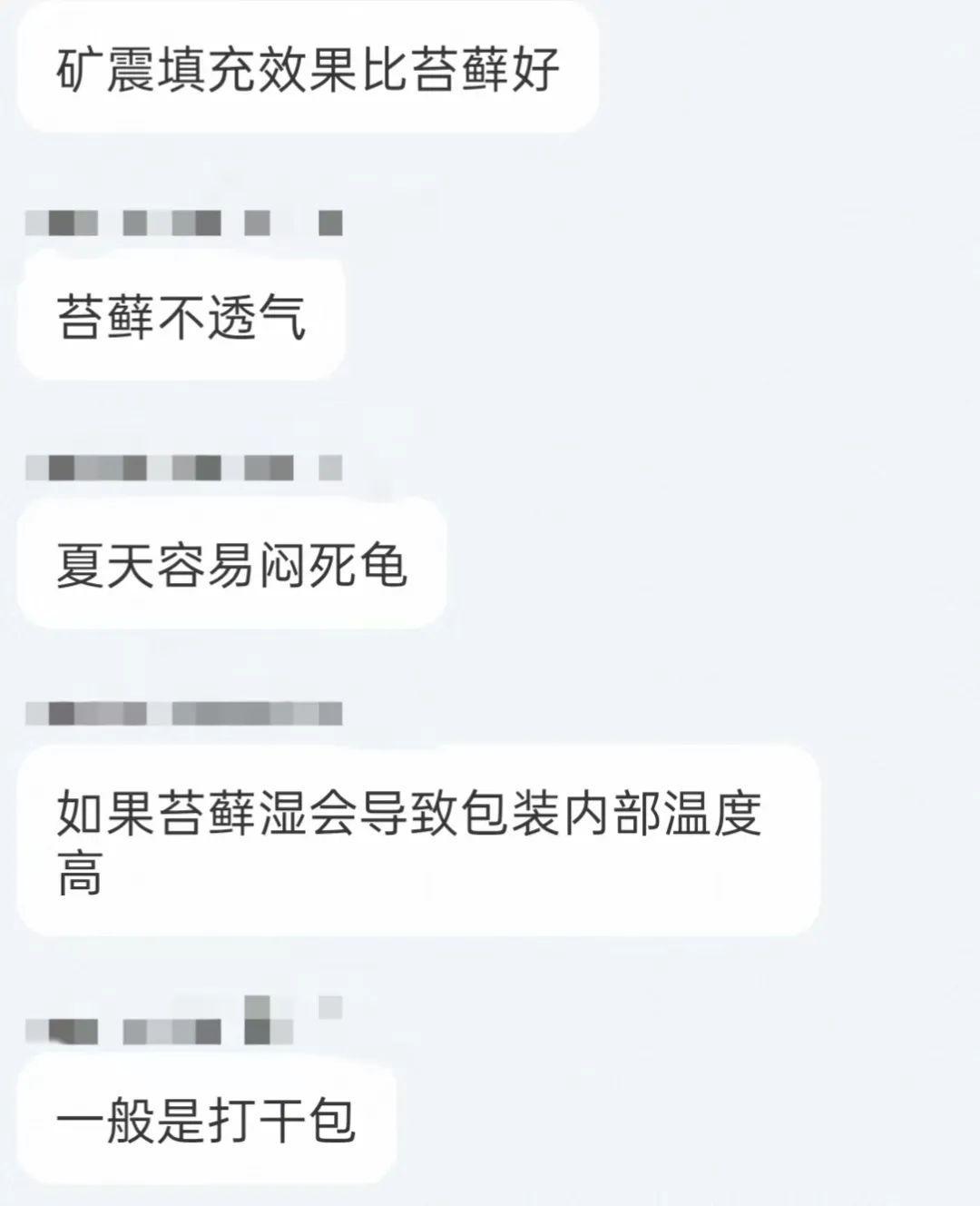 随后,记者随即咨询四家售卖活体龟鳖的网店,这四家网店均表示,自己店内运输龟鳖的内衬填充物是苔藓。