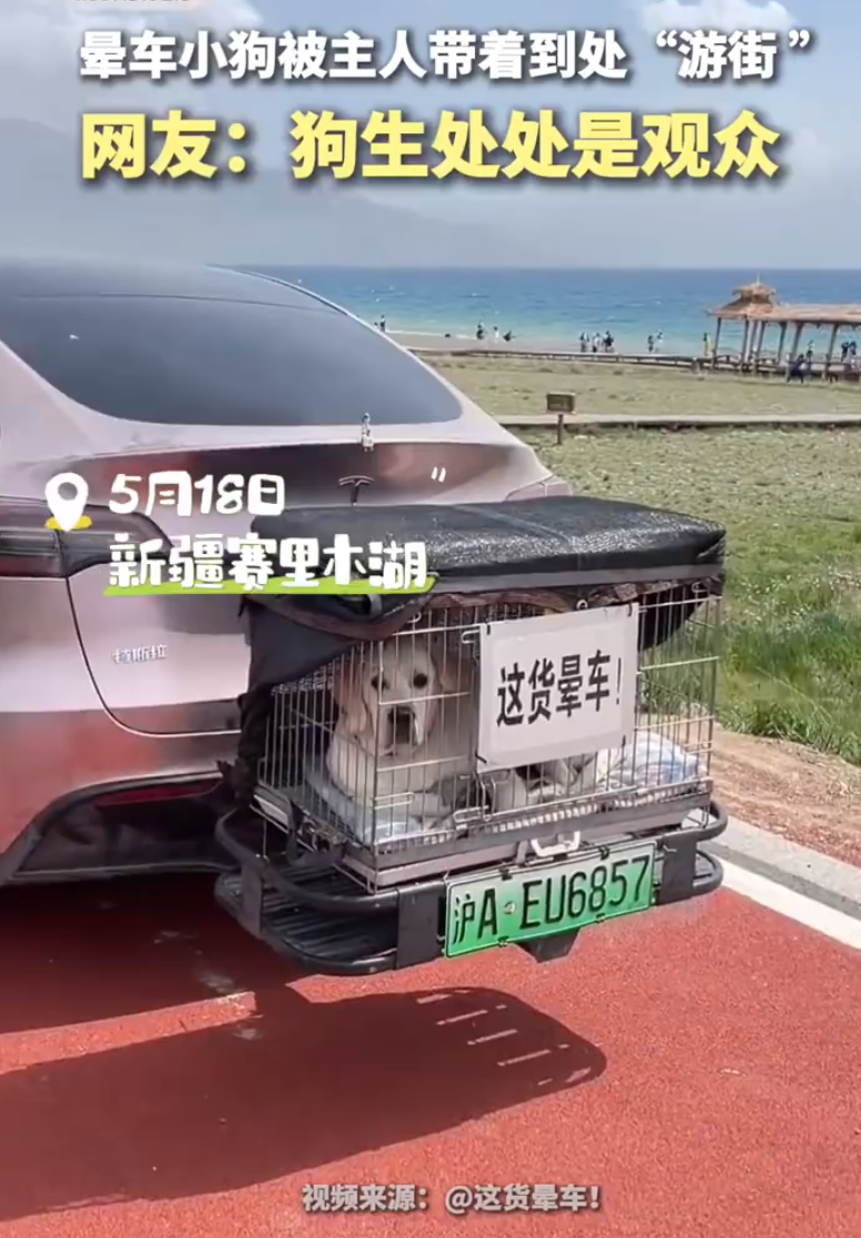 近日,众多不同地域的网友,在网络平台上晒出一只跟着主人四处旅行的拉布拉多犬。网贴中,这只拉布拉多被主人装在一个可以移动的笼子里,挂在机动车尾部,跟车而行,笼子外写着:这货晕车。