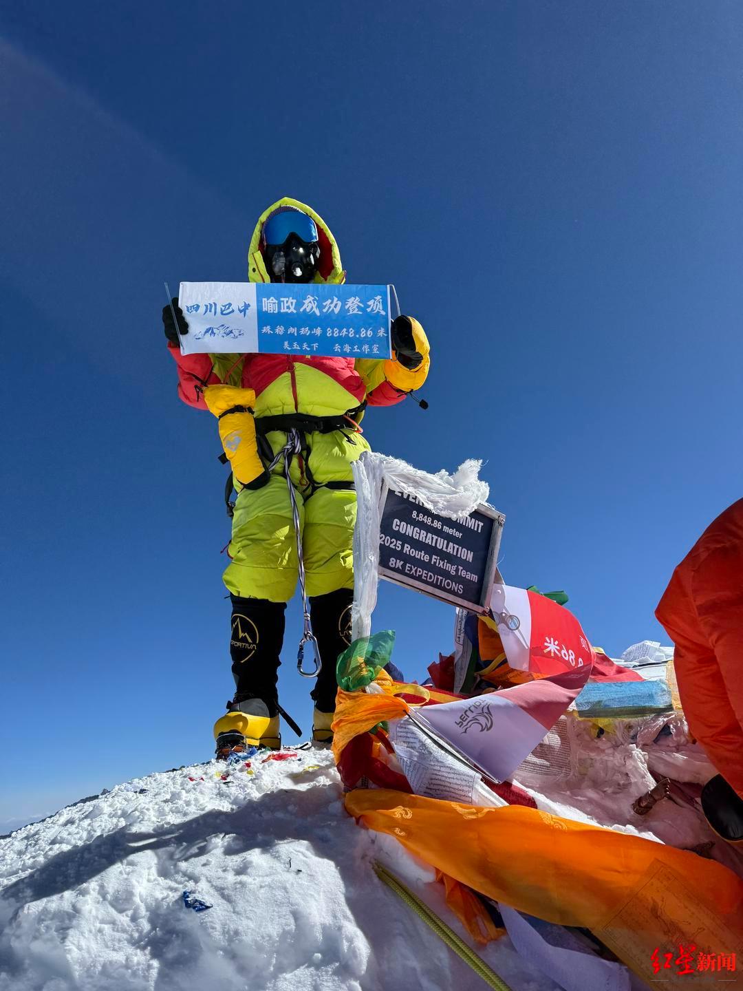 据了解,喻政是巴中市巴州区清江镇人,目前从事珠宝玉石行业,其攀登珠峰的行为也吸引了不少巴中老乡的关注和点赞。
