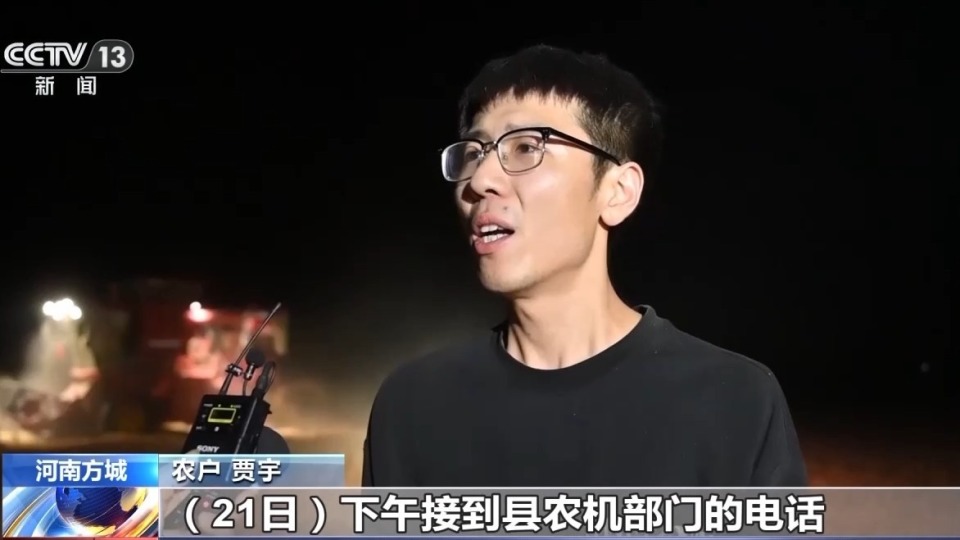 农户 贾宇:21日下午接到县农机部门的电话,说晚上12点以后会有雨,连夜组织收割机抢收。