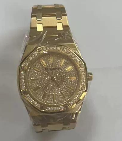 在淘宝网司法拍卖网络平台上,这块表编号为“9”的腕表系作为涉刑资产由宁夏银川市中级人民法院进行司法拍卖,起拍价仅为1元。相关评估报告信息显示,这块腕表是一款机械自动手表,金色镶钻表盘以及金色金属表带,其中,表带材质为“18K黄金”,表壳材质为“18K黄金/镶钻”,表扣材质为“18K白金”。