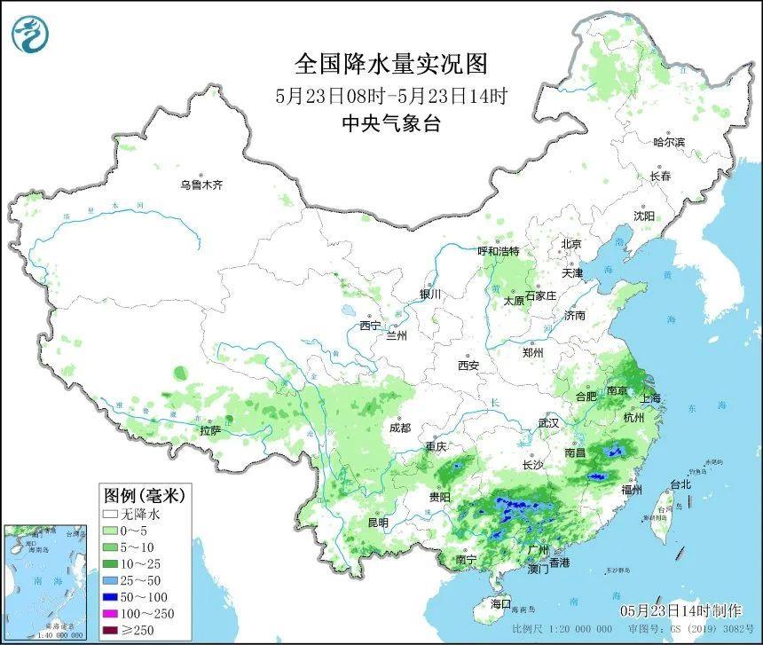 今天(5月23日)白天,南方的强降雨整体东移南压,主要集中在湖南南部、广西中东部、广东、福建西北部等地,局地6小时累计降水量超过50毫米。不仅如此,上述多地还出现了短时强降雨,局部雨势十分猛烈。