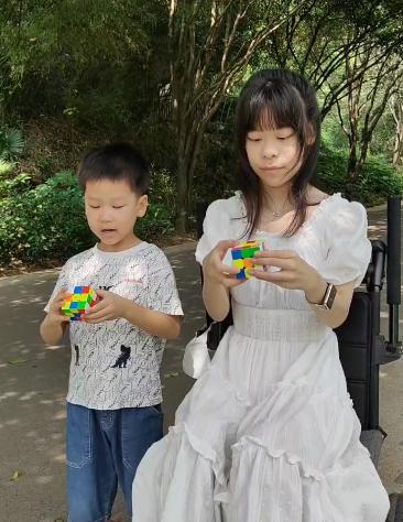 "比较欣慰,他其实算是我一开始带的,湖庆幸自己当时带教了”,姐姐透露,在弟弟两岁时自己就带着他玩魔方,弟弟则是会在一旁模仿自己的动作。