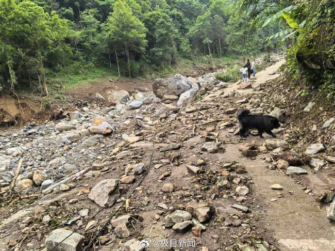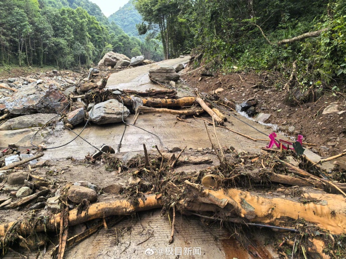 记者注意到,一条约20米宽的河沟从山上而下,正在哗哗流水,坡度比较大。河沟内,大小不一的石头遍地都是,不时还可以看见冲断的树木。