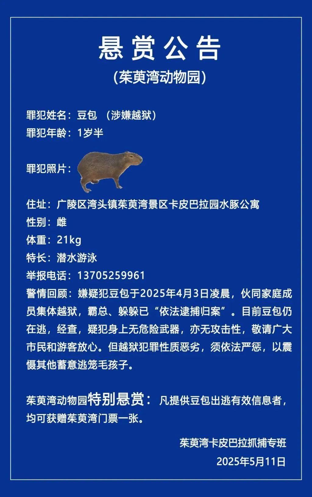 景区发布的公告中显示,凡提供“匹诺曹”出逃有效信息者,均可获赠奇趣童年门票一张、端午粽礼一盒。景区表示,浣熊“匹诺曹”性格温顺、可爱,身上无危险武器、亦无攻击性。