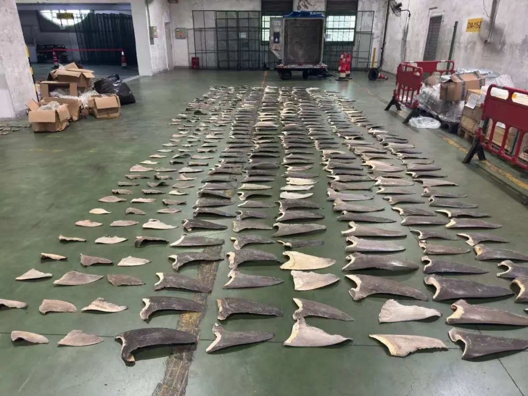 深圳宝安机场海关关员在对转运货物开展巡仓监管时,发现一票货物外包装破旧且散发出浓烈的异味,随即对其开箱查验。经查发现,纸箱内装有用透明保鲜膜包裹的疑似鱼翅一批。后经专业机构鉴定,该批鱼翅实际为低鳍真鲨、灰真鲨、无沟双髻鲨、镰状真鲨制品,均被列入《濒危野生动植物种国际贸易公约》(CITES)附录Ⅱ。目前,该案件已移交海关缉私部门处理。