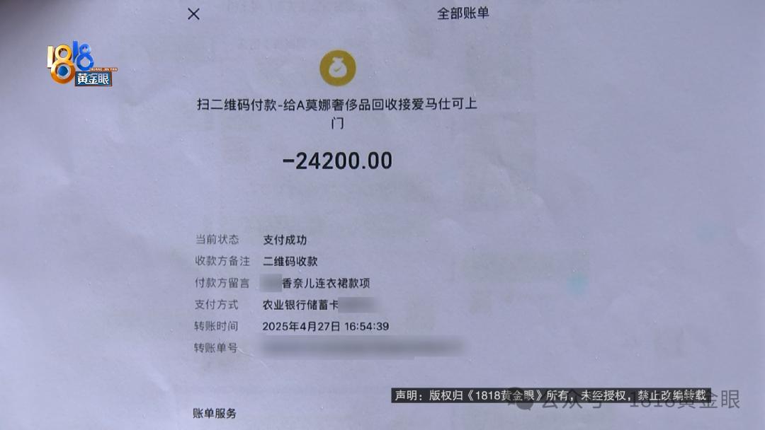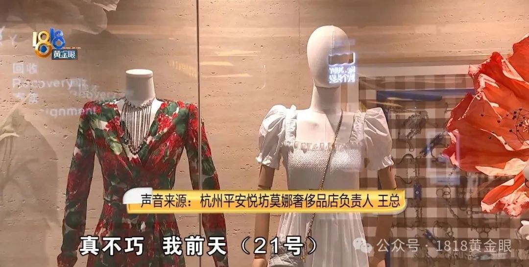 杭州平安悦坊莫娜奢侈品店负责人 王总:先看一下这条裙子的成色没有太大的变化,就按照当初的价格,我们签一个协议,等鉴定师回来、看一下这个物品,没有什么问题,我就叫财务去打款。这个流程,如果鉴定师在的话会很快,真不巧,我前天(21号)带鉴定师到上海来。
